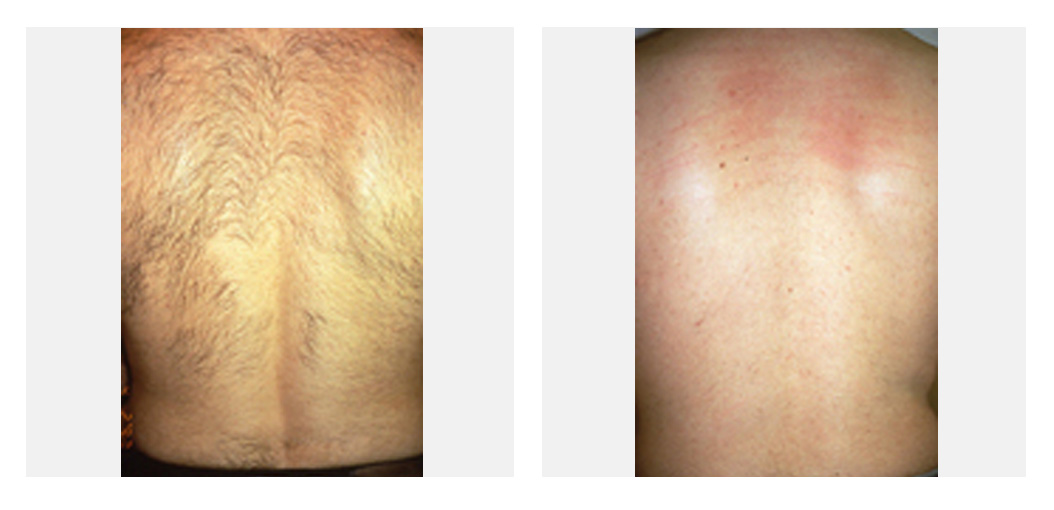 The hair is shaved on body areas, except the face in females where it is gently clipped and never shaved. The patient is asked to wear eye protection consisting of an opaque covering or goggles. A small handpiece is placed against the skin and the laser is activated. The laser is equipped with a cooling device delivered prior to the laser beam, which decreases the pain and side effects of the laser. Sun protection before and after the treatment is essential. It is very important that the hair is not waxed or plucked in the period up to 10 days prior to laser hair removal. |